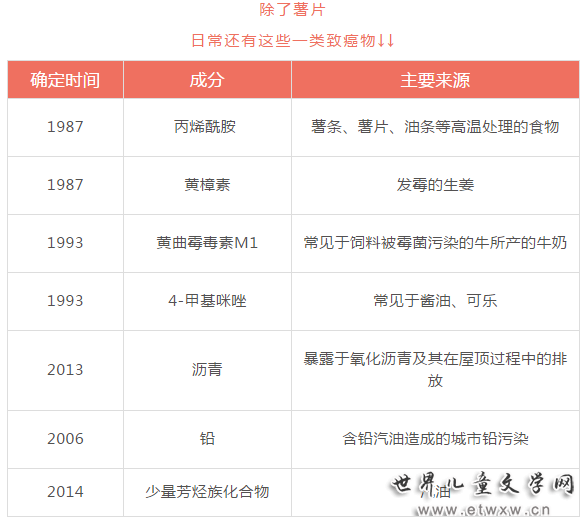同时还有苯并芘、丙烯酰胺等其他致癌物